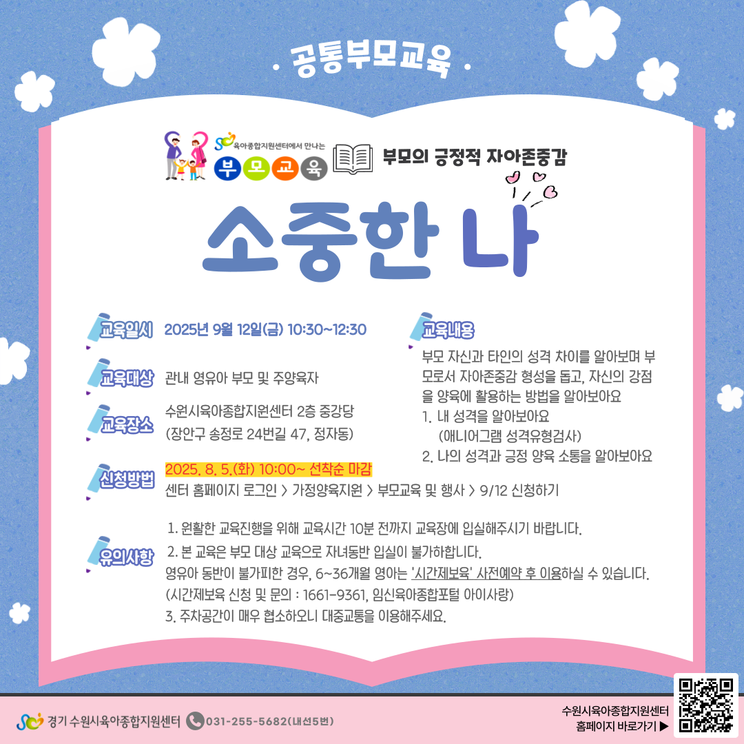영유아 동반 시 입실하실 수 없습니다. (부모-자녀프로그램은 제외)